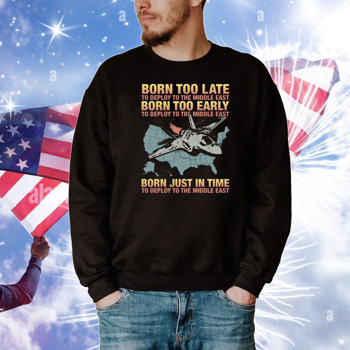 The “Born Too Late To Deploy To The Middle East” T-Shirt is a great conversation starter and a fun way to show off your personality and interests. It’s also a fantastic gift for military enthusiasts, history buffs, or anyone with a witty sense of humor.