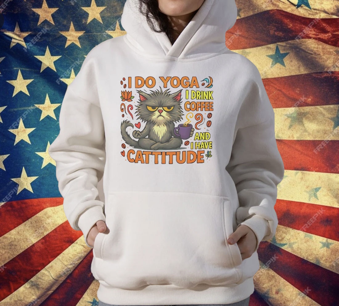 Cat I do Yoga I Drink Coffee And I Have Cattitude T-Shirt