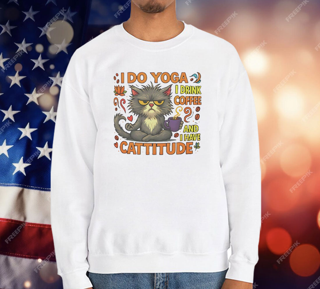 I Do Yoga, I Drink Coffee, And I Have Cattitude” Cat Shirt