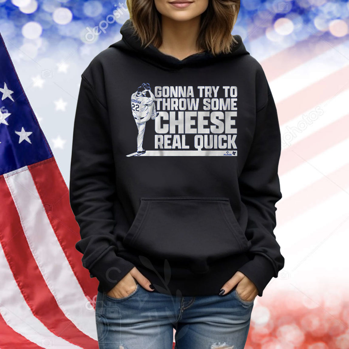 Funny & Iconic Graphic: Features the quote “Gonna try to throw some cheese real quick” paired with a cool, retro baseball design.