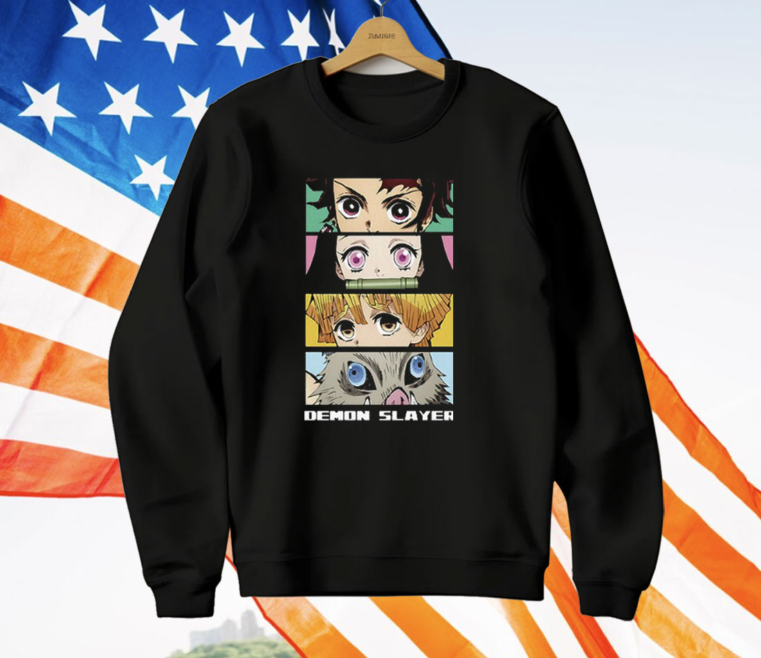 Demon Slayer Group Eyes 4-Panel Black T-Shirt