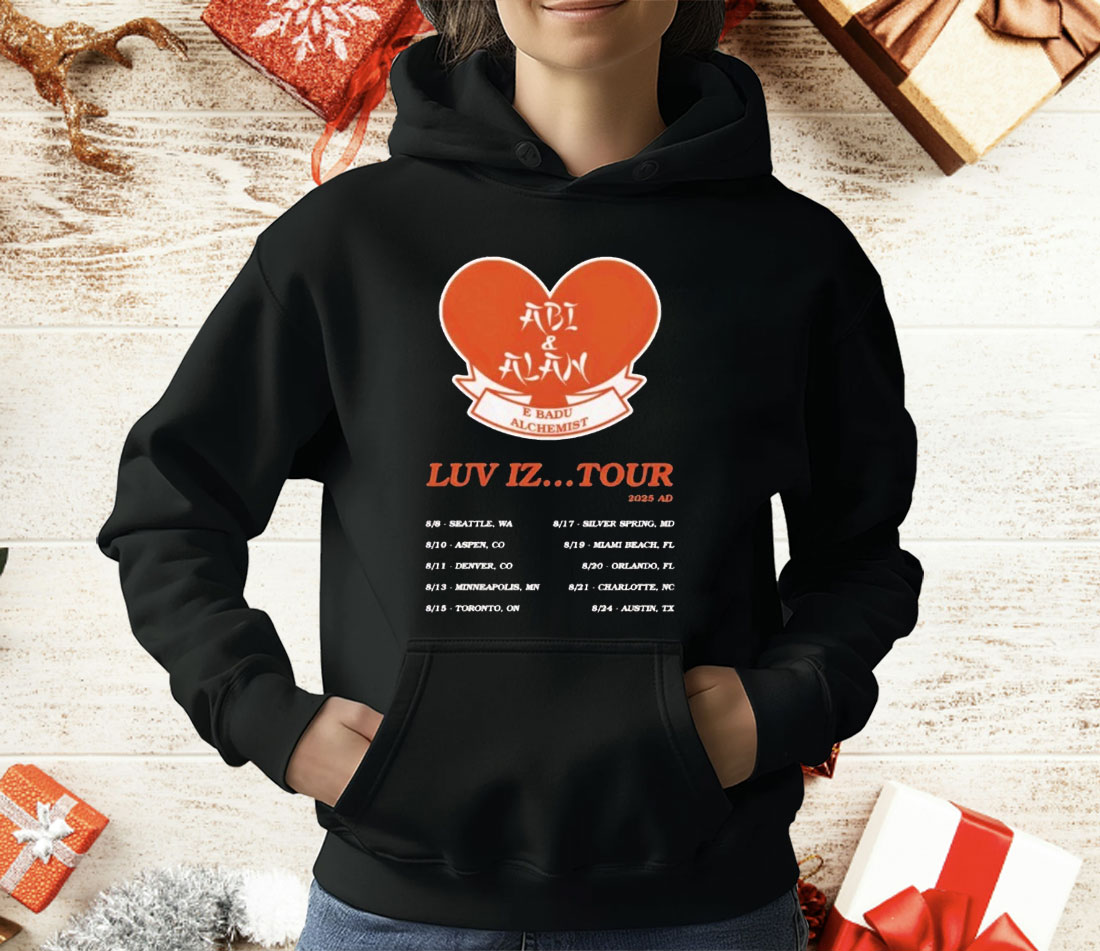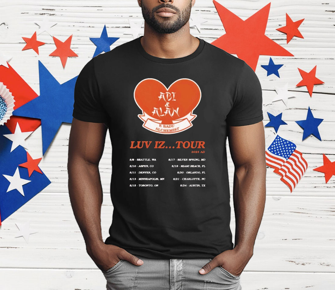 Erykah Badu tour shirt, Abi & Alan Luv Iz t-shirt, neo-soul concert tee, unisex musician graphic shirt, music fan apparel, live tour merchandise, concert memorabilia t-shirt, Erykah Badu fan clothing, collector’s music tee, soulful music graphic shirt