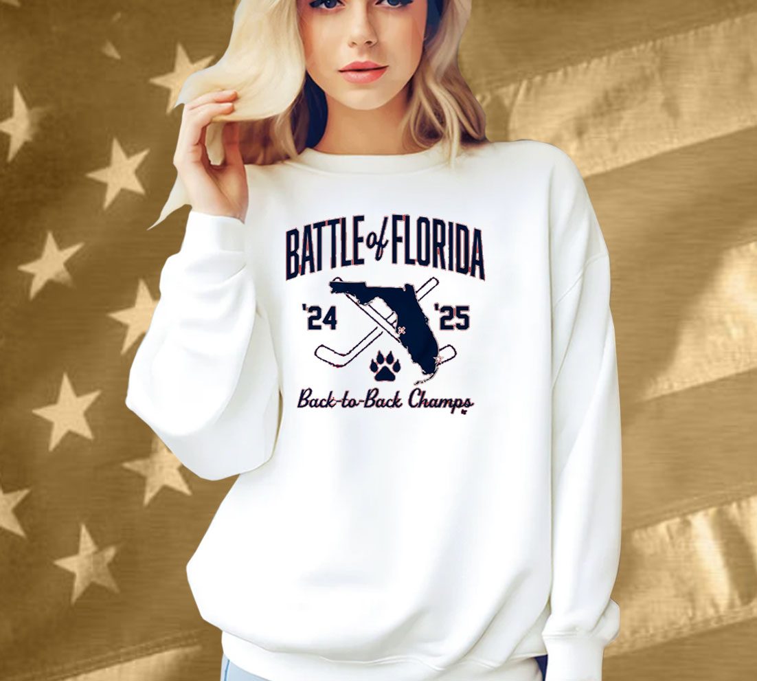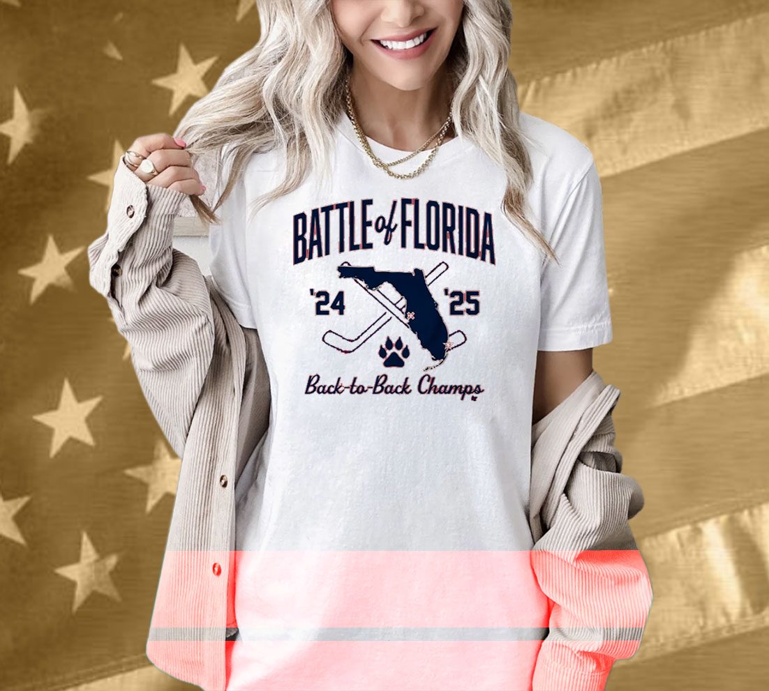 Celebrate the Florida Panthers’ reign as Battle of Florida champions with this premium commemorative t-shirt! Made from ultra-soft, breathable cotton, this tee offers superior comfort for all-day wear. The vibrant, high-quality graphic showcases a bold “Battle of Florida Champs” design, featuring the iconic Panthers logo and commemorative date, ensuring a lasting tribute to this epic rivalry victory. Durable double-stitched seams and a classic crew neck design provide a timeless fit that will hold up wash after wash. Whether you’re at the arena, watching the game at home, or out on the town, this shirt proudly displays your Panthers pride and commemorates a historic moment in Florida hockey. More than just a shirt, it’s a piece of Florida hockey history and a symbol of your unwavering support. Join the celebration and claim your piece of the legacy – order your Florida Hockey Battle of Florida Champs Shirt today!