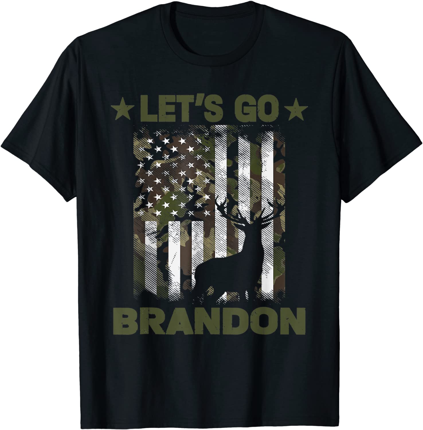 Funny Let’s Go Branson Camo American Flag Deer Elk Buck T-Shirt