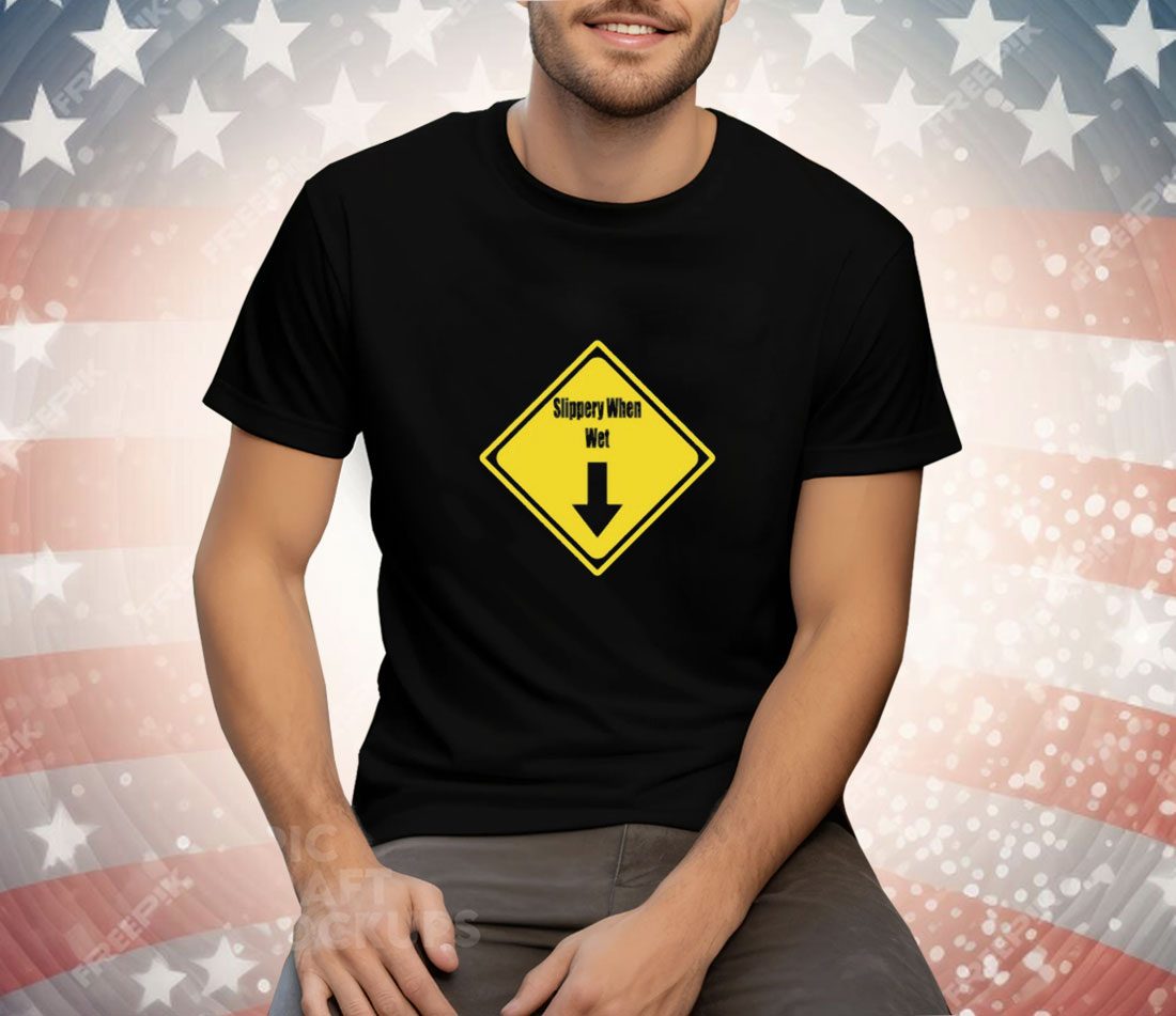 Prepare to turn heads and spread laughter wherever you go with our exclusive “Slippery When Wet” tee shirt. Inspired by the iconic warning sign, this tee is a witty and relatable way to express your playful side.