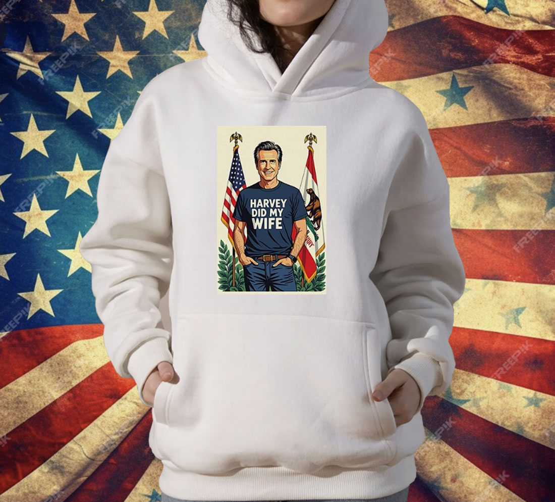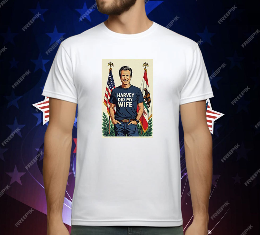 Gavin Newsom Harvey Did My Wife shirt, political satire tee, funny political graphic t-shirt, unisex novelty apparel, edgy political humor shirt, California politics joke tee, casual statement t-shirt, humorous political gift shirt, conversation starter graphic tee, satire and parody shirt