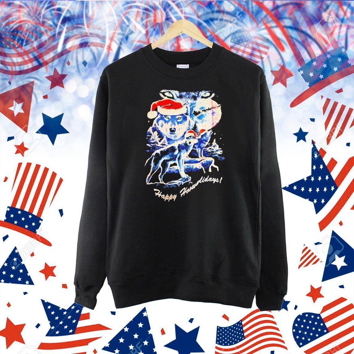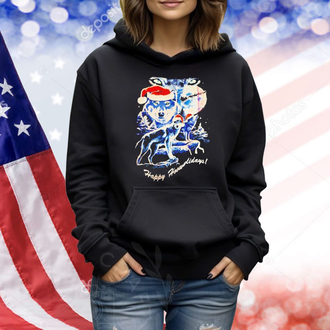Happy Howlidays Wolves in Santa Hats Christmas Shirt