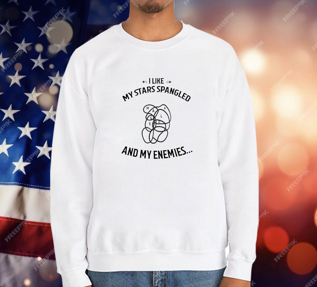 Unleash your patriotic spirit and show your unwavering support for the land of the free and the home of the brave with our exclusive “I Like My Stars Spangled and My Enemies” T-shirt.
