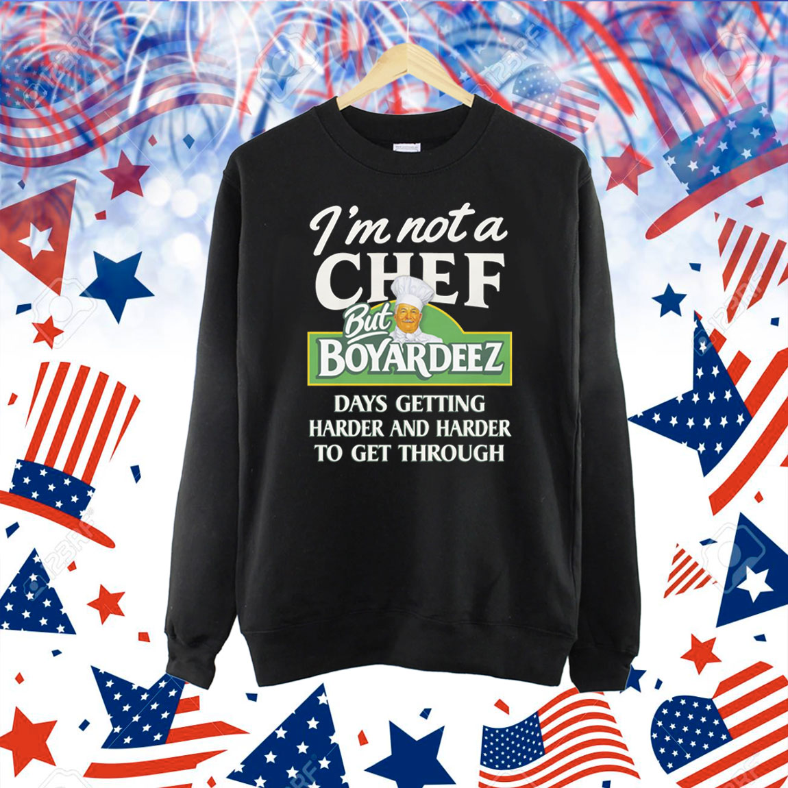 Don’t let those tough cooking days get you down – grab your own “I’m Not A Chef But Boyardeez Days Getting Harder And Harder To Get Through” shirt today and tackle the kitchen with a sense of humor and style.