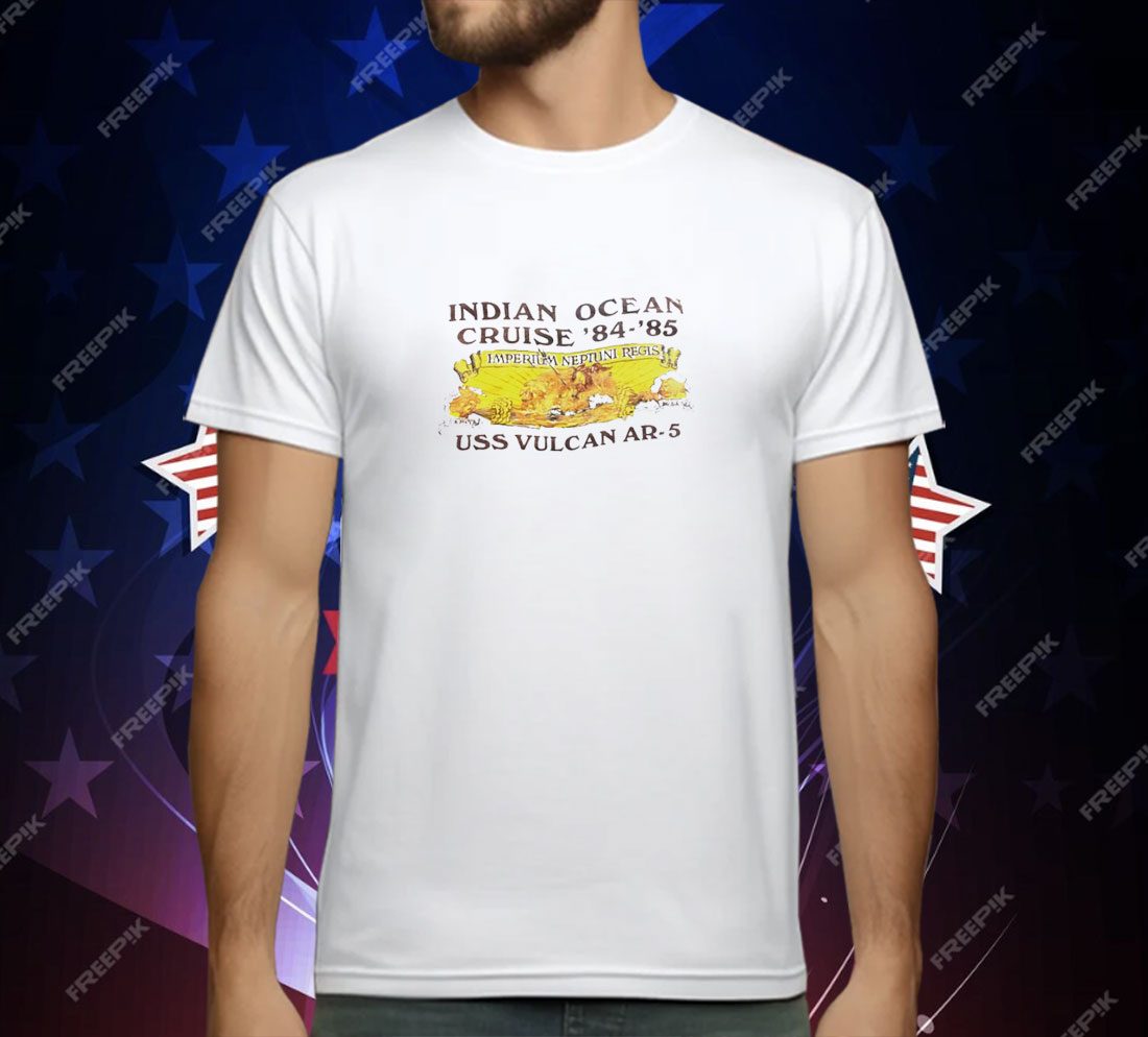 Order your Indian Ocean Cruise 84-85 USS Vulcan AR-5 T-Shirt today and embark on a nostalgic journey that celebrates the spirit of adventure and camaraderie.