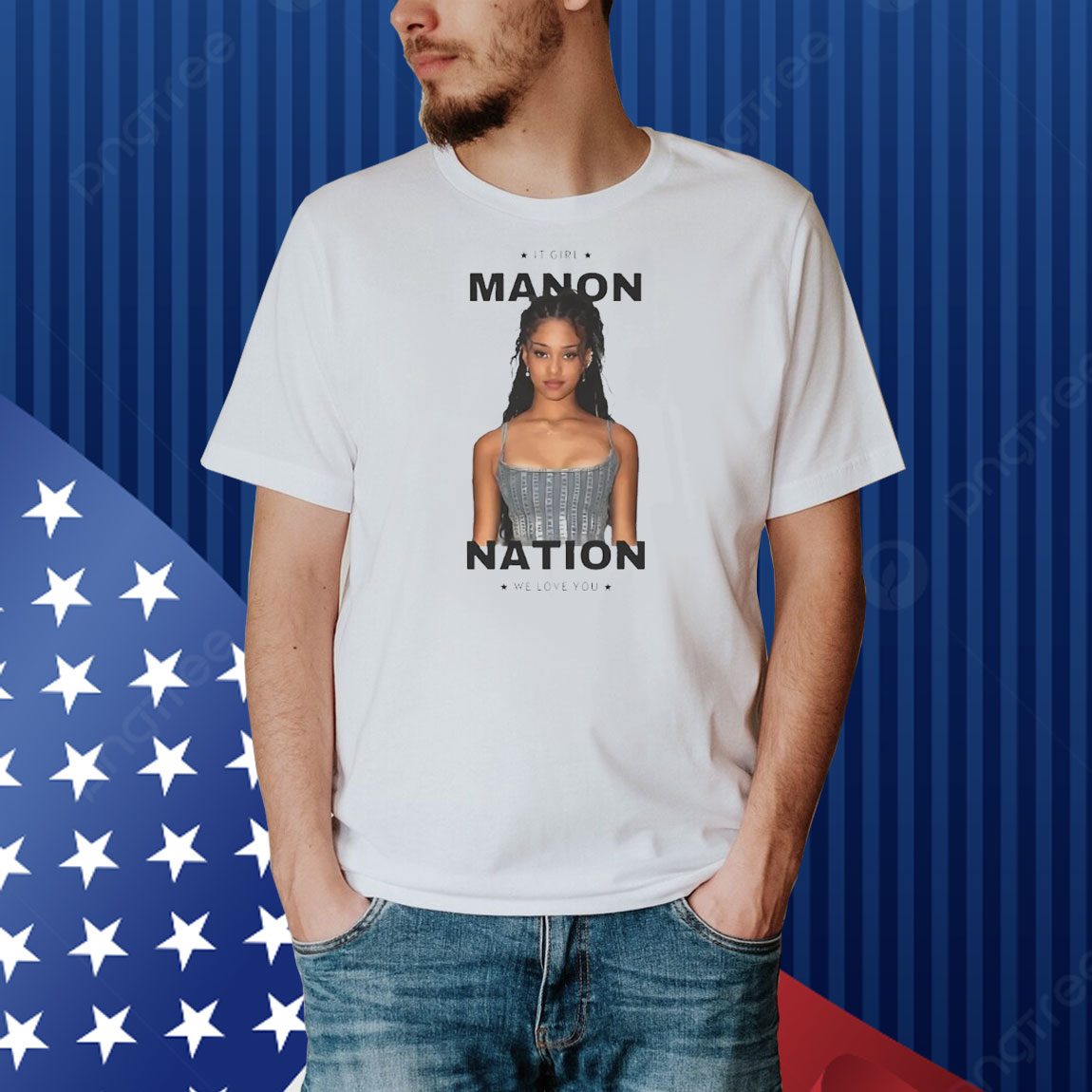 Step into the spotlight with our exclusive “It Girl Manon Nation We Love You” shirt! This stylish and empowering tee is a must-have for any fan of the iconic fashionista, Manon.