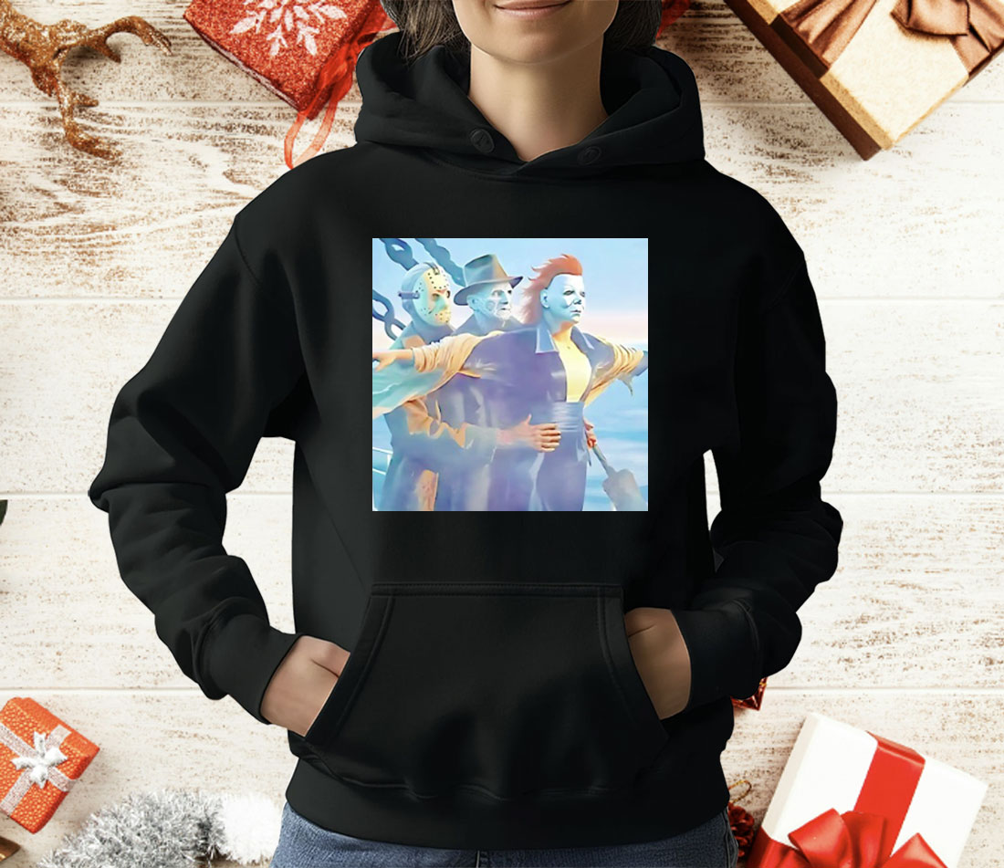 What happens when horror’s most iconic slashers take a break from stalking and slashing… to recreate one of cinema’s most romantic scenes? You get the Jason Voorhees, Freddy Krueger & Michael Myers Titanic Halloween Shirt — the ultimate horror-meets-humor mashup that will have everyone screaming (with laughter).