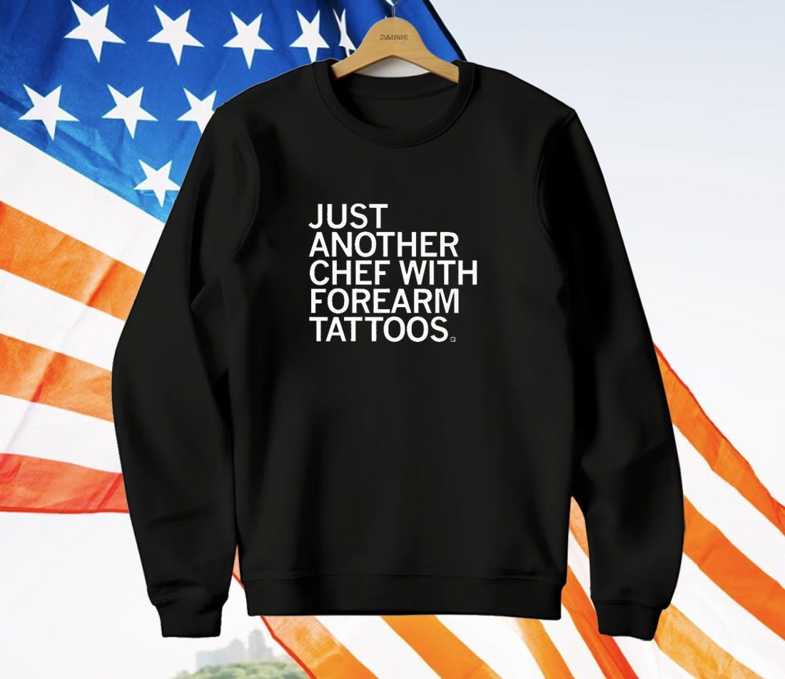 Bold and Eye-Catching Design: The striking graphic features the iconic phrase “Just Another Chef With Forearm Tattoos” in a bold, hand-drawn style.