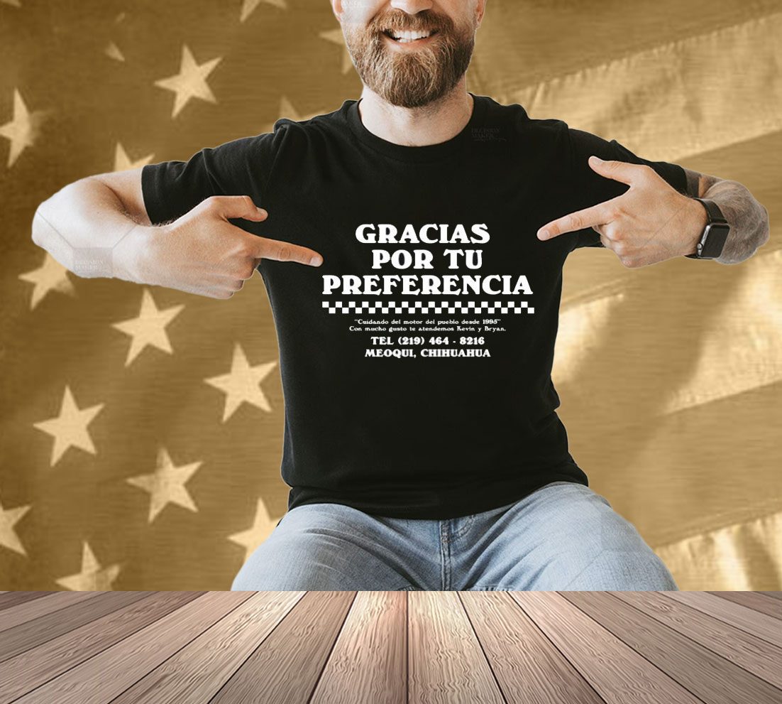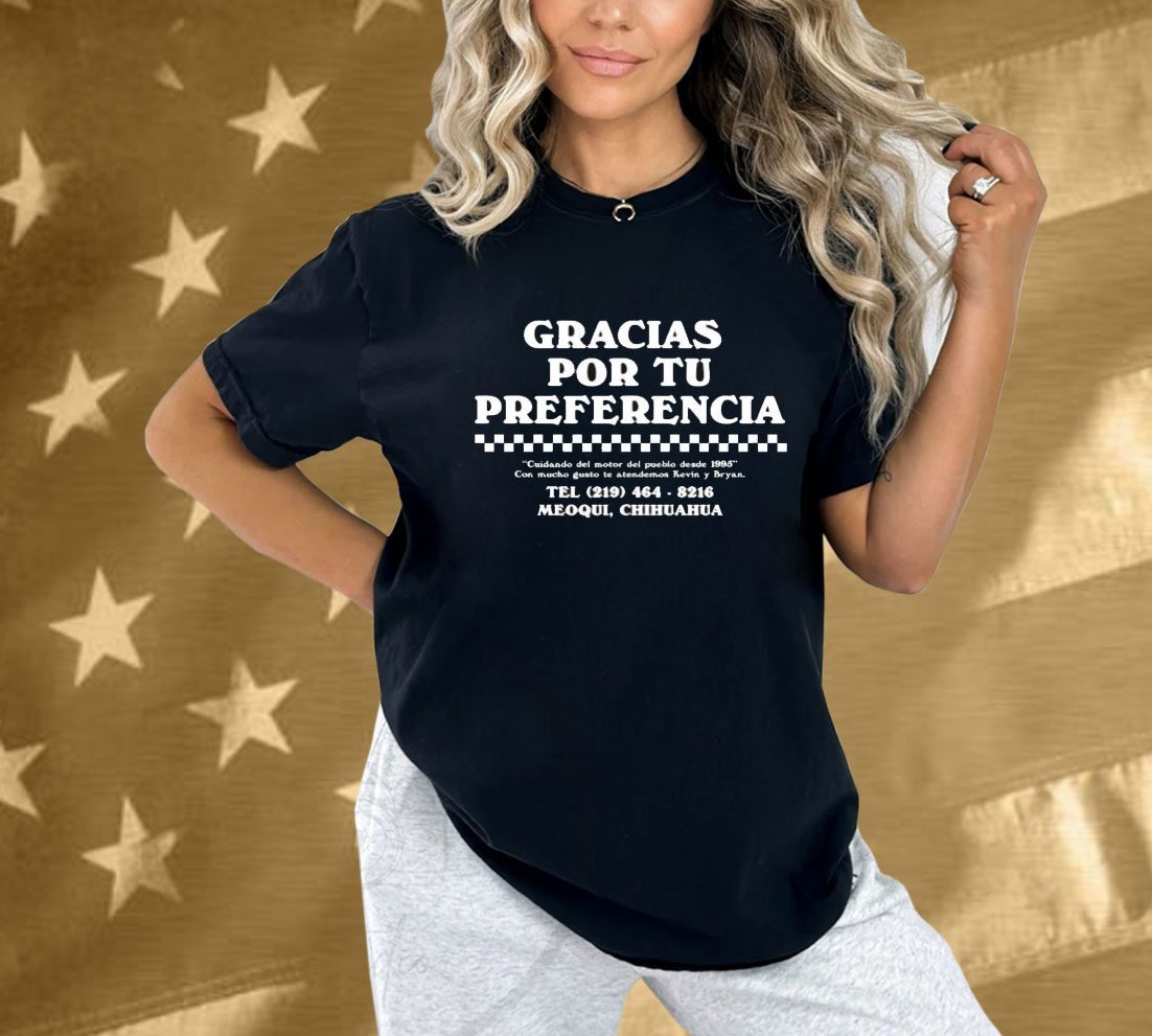 “Gracias Por Tu Preferencia” print on the back, expressing gratitude for your unwavering support