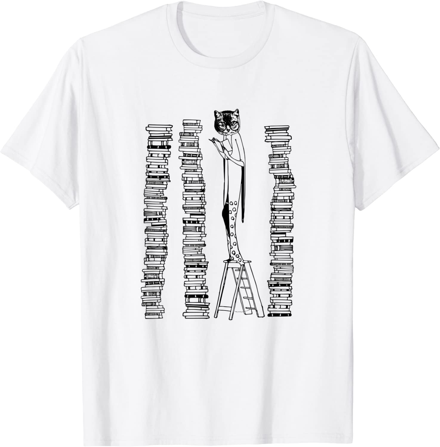 Lady Cat And Stack Of Books Woman Reading Retro Victorian T-Shirt