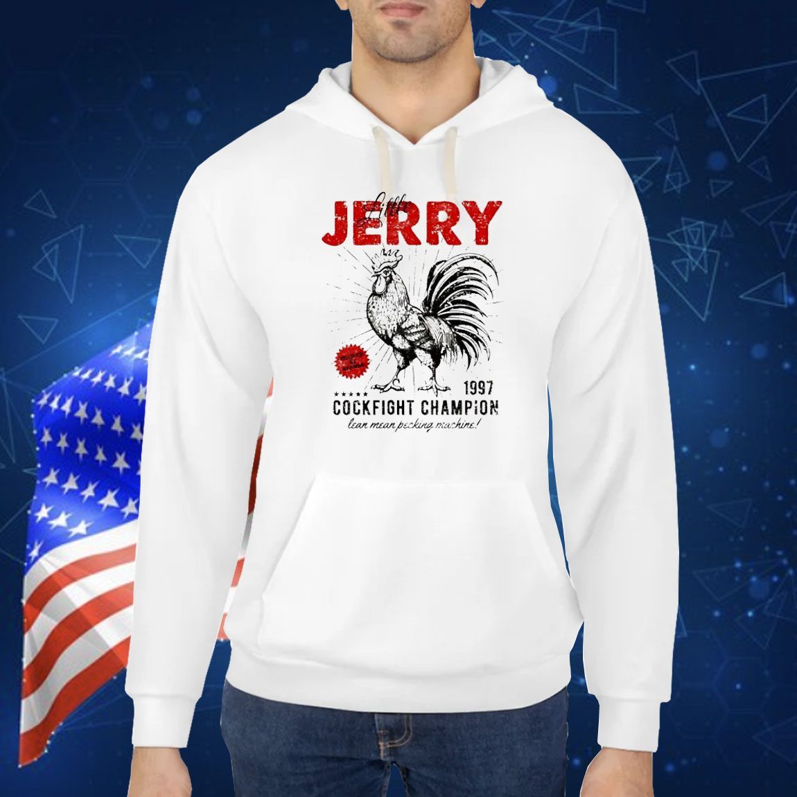 This vintage shirt is not just a piece of clothing; it’s a testament to the indomitable spirit of a true champion. By wearing it, you become a part of the legend of Little Jerry, the lean, mean pecking machine that reigned supreme in the ring.