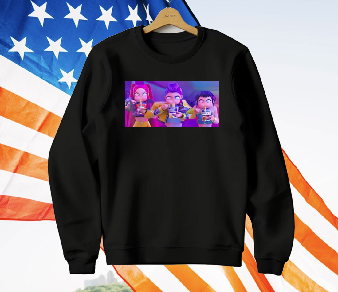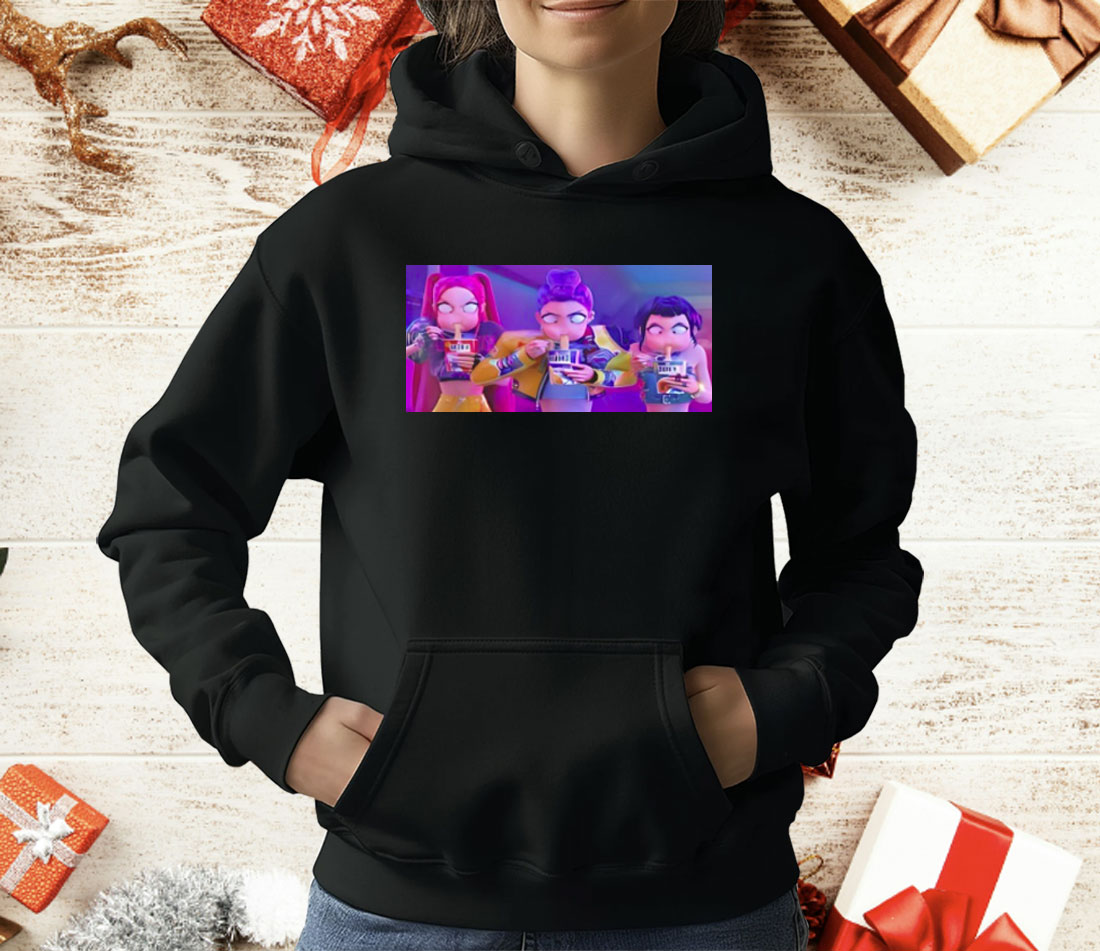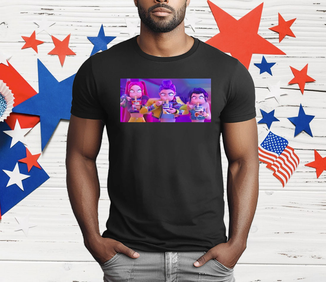 This shirt captures peak anime rage energy — and we’re here for it. Featuring the iconic trio Mira, Rumi, and Zoey locked in a heated noodle showdown, this tee blends cuteness, chaos, and carb-loading into one fiery fashion statement.