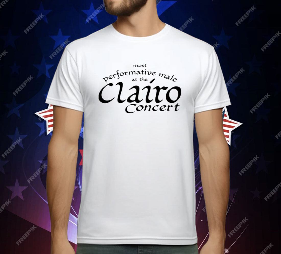 Most Performative Male At The Clairo Concert shirt, Clairo fan t-shirt, funny concert graphic tee, music festival humor shirt, unisex fandom apparel, quirky music lover gift, concert-goer novelty t-shirt, performative male fan shirt, Clairo concert merchandise, humorous pop music tee.
