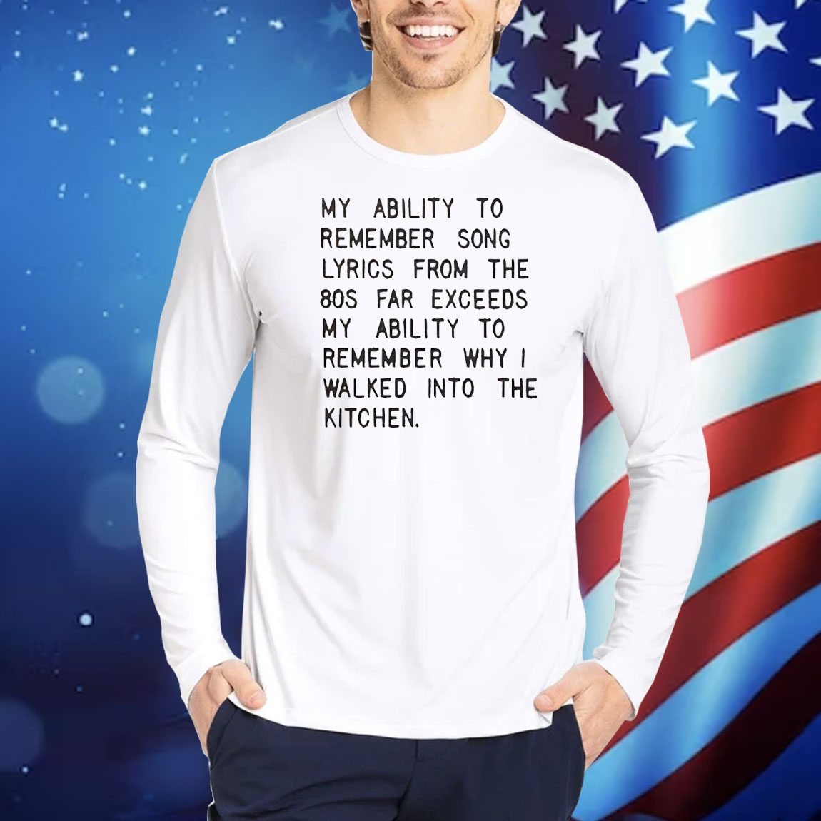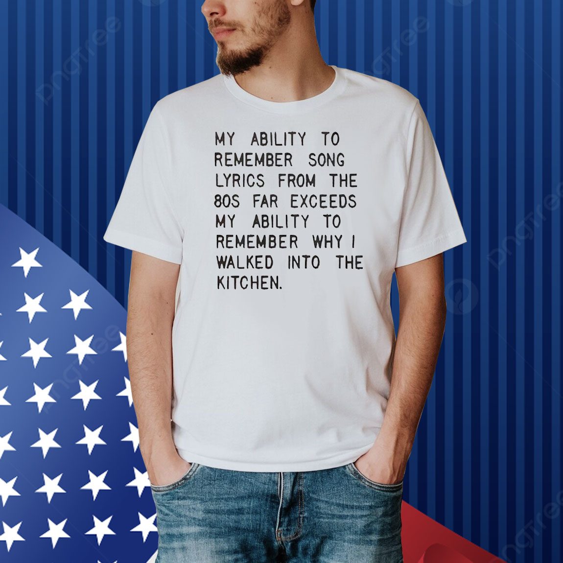 My ability to remember song lyrics from the 80s far exceeds my ability to remember why I walked into the kitchen Shirt