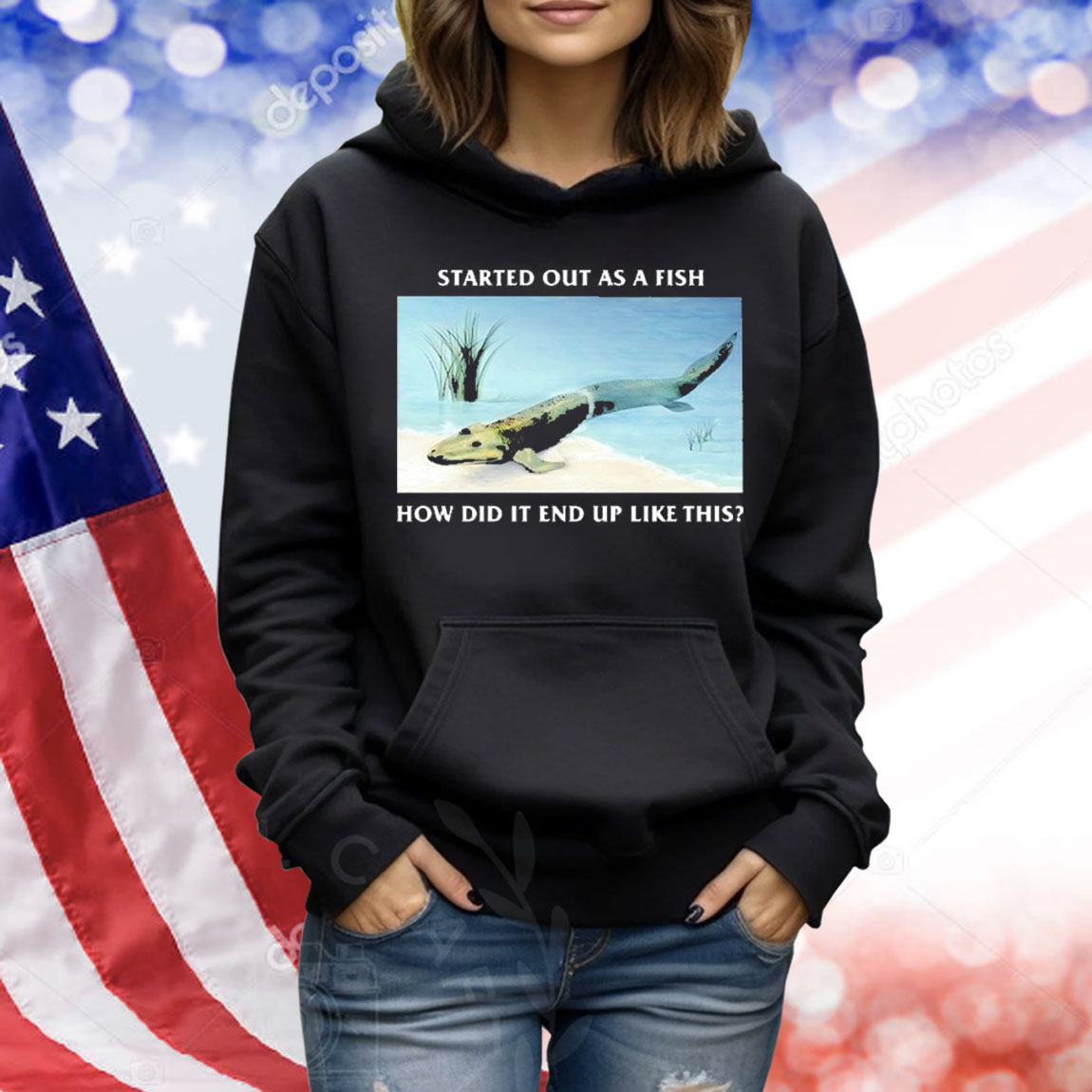 Wear your story. Embrace the mystery. Show off your sense of humor with the Official Started Out As A Fish How Did It End Up Like This Shirt.