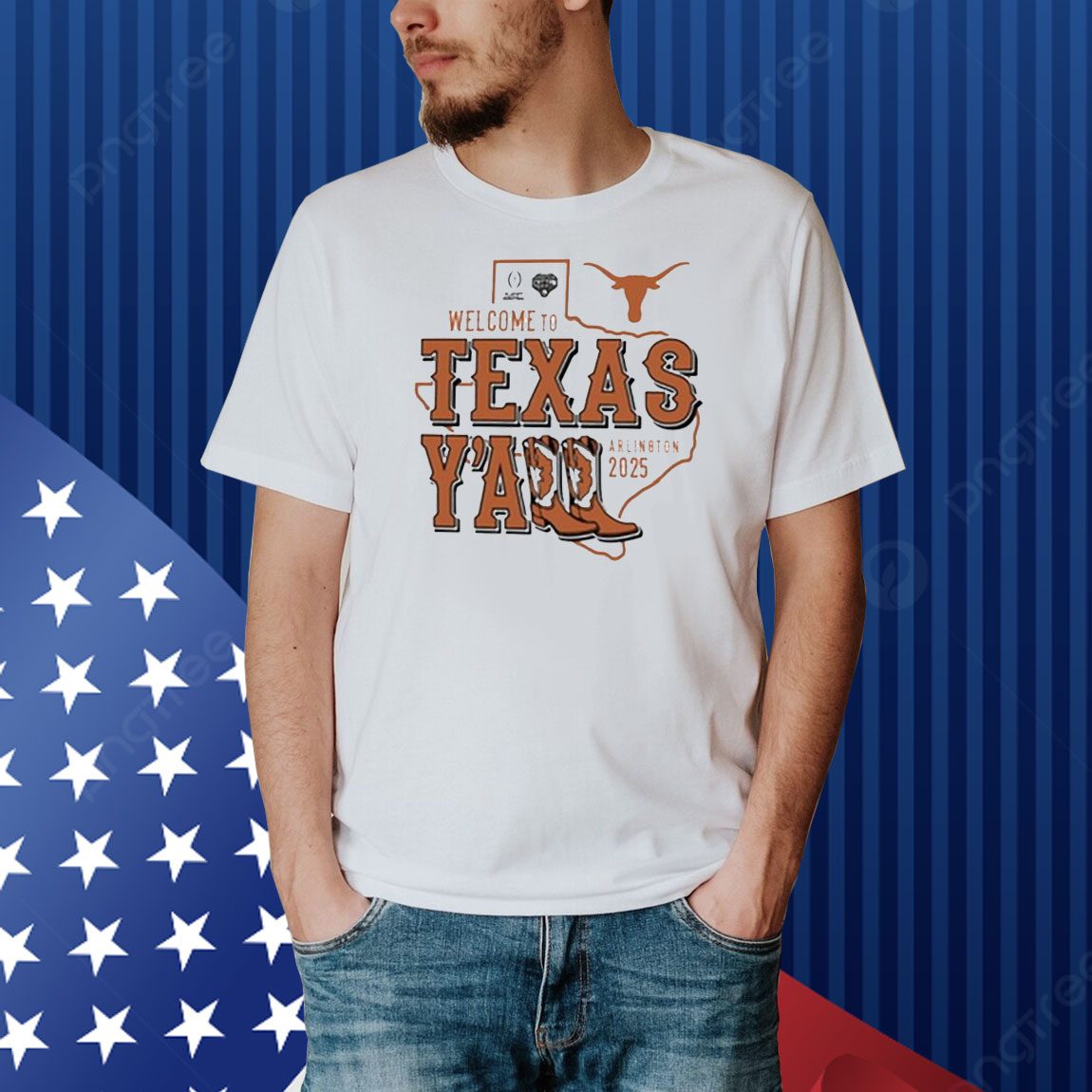 Official Texas Longhorns NCAA Playoff Semifinal 2025 Cotton Bowl Welcome To Texas Y’All Arlington 2025 Shirt