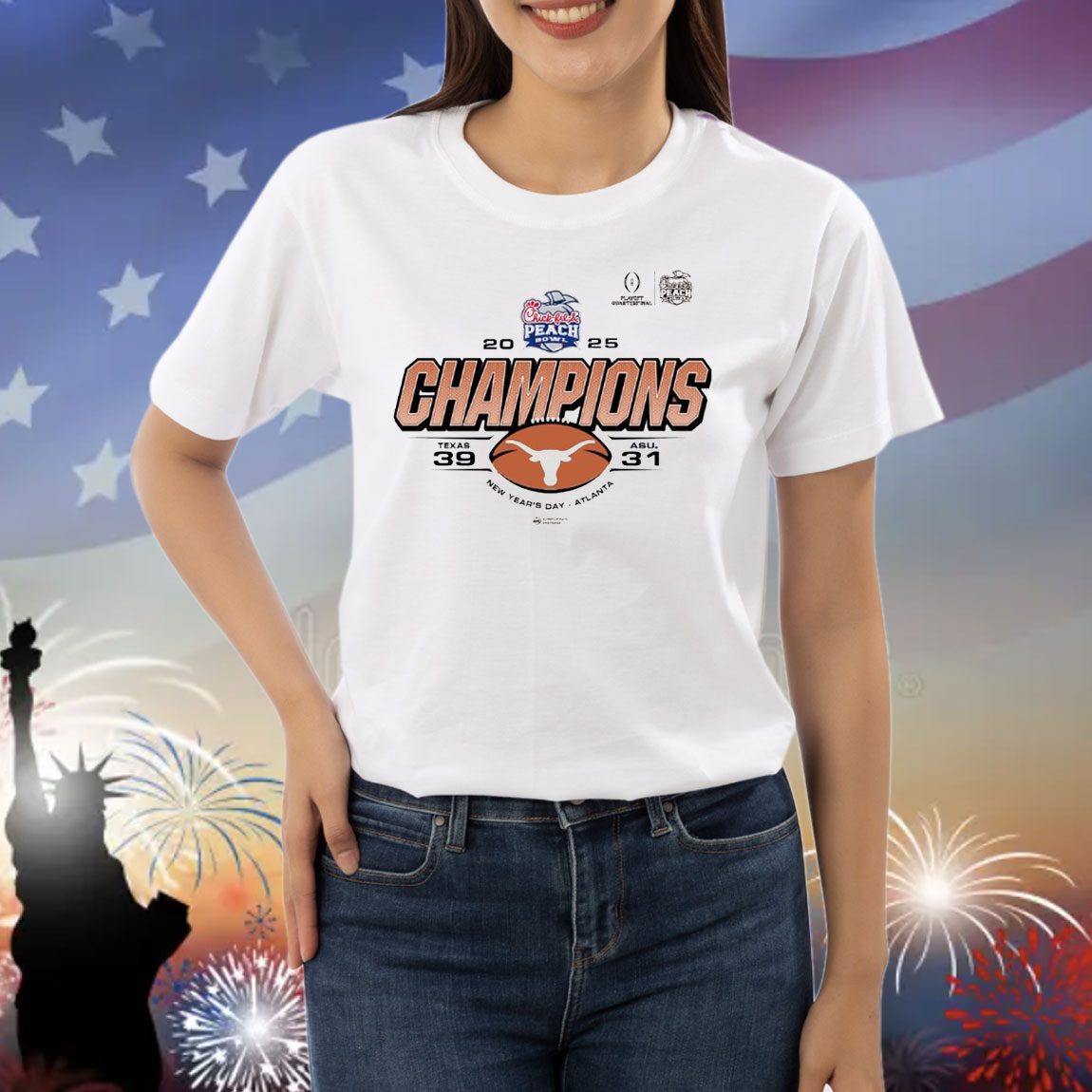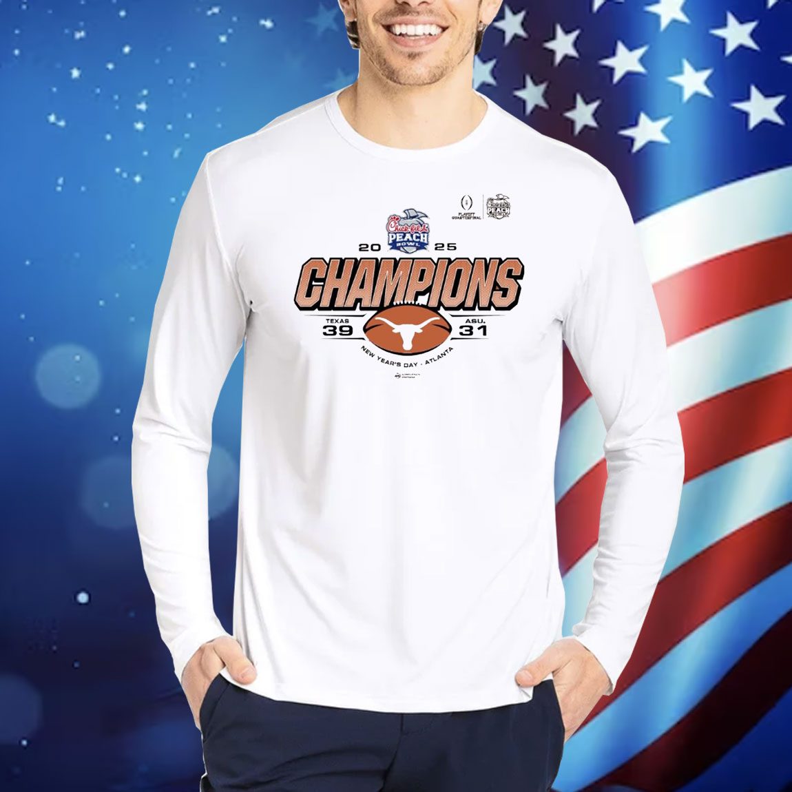Official Texas Longhorns Vs ASU Arizona State Sun Devils 39-31 Score Playoff Quarterfinal 2025 Chick-Fil-A Peach Bowl Champs New Year’s Day NCAA Shirt