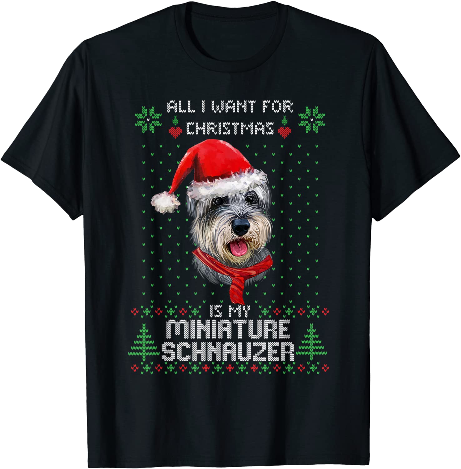 Official Ugly ALL I WANT FOR CHRISTMAS IS MY MINIATURE SCHNAUZER Xmas T-Shirt