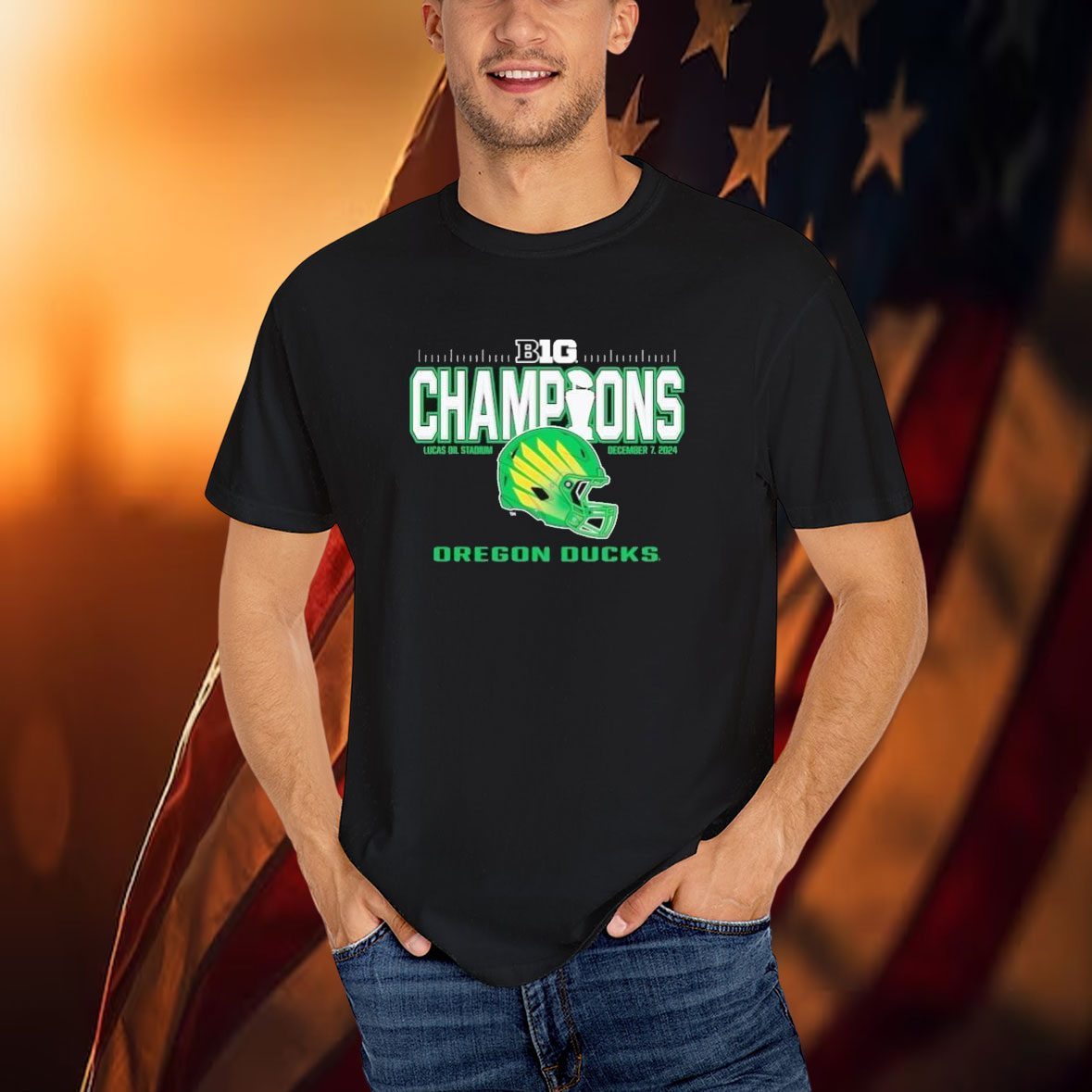 Oregon Ducks 2024 Big Ten Football Conference Champions Lucas Oil Stadium T-Shirt
