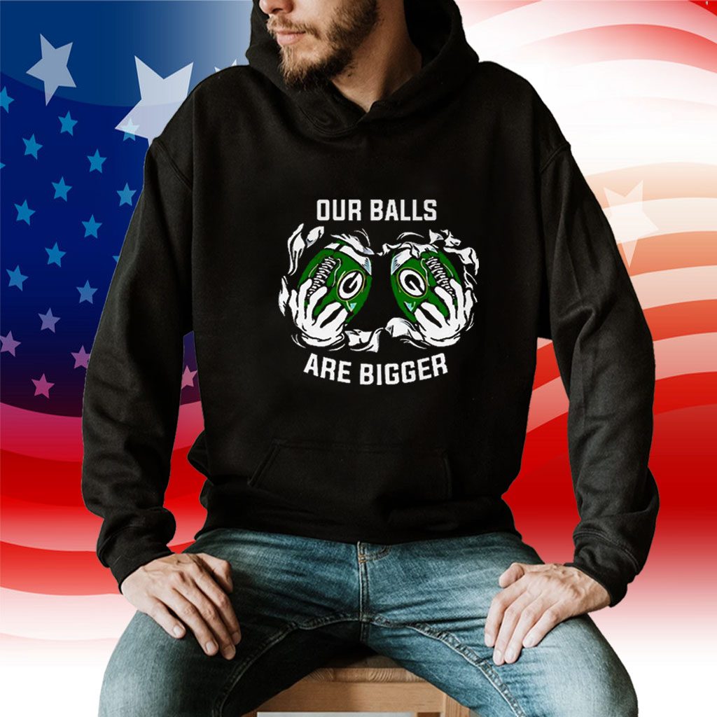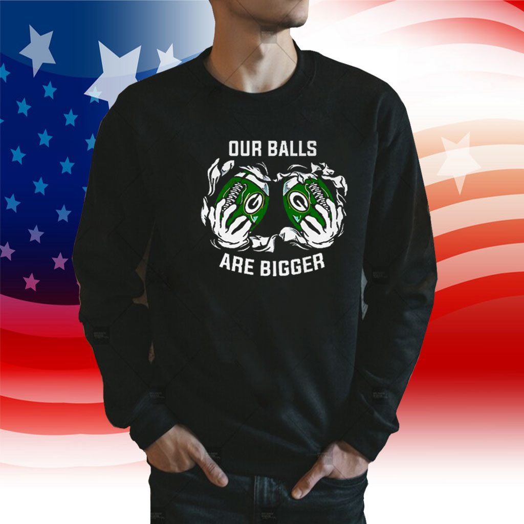 But what truly sets this tee shirt apart is its unique and playful slogan – “Our Balls Are Bigger.” This cheeky phrase not only adds a touch of humor but also serves as a powerful statement of team pride. It sparks conversations, elicits smiles, and instantly connects you with fellow Packers fans, creating a sense of camaraderie and shared passion.