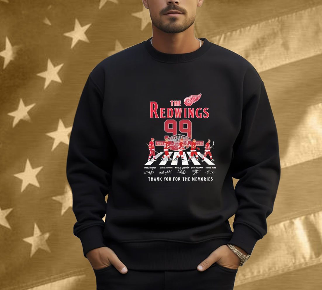 Detroit Red Wings 1926-2025 99 Years Signature Thank You For The Memories Signatures Shirt