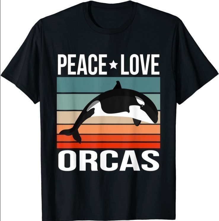 Peace Love Orcas Quote Retro Art Killer Whale Vintage T-Shirt