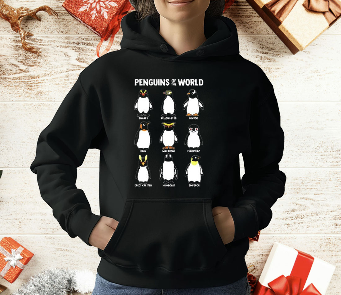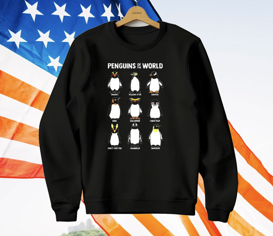 SEO Keywords: Penguins of the World shirt, yellow-eyed gentoo penguin t-shirt, wildlife lover tee, birdwatching apparel, nature conservation shirt, penguin fan shirt, unisex animal shirt, wildlife education t-shirt, penguin gift idea, ocean wildlife tee