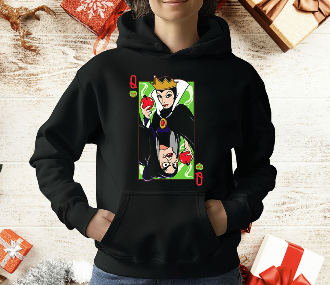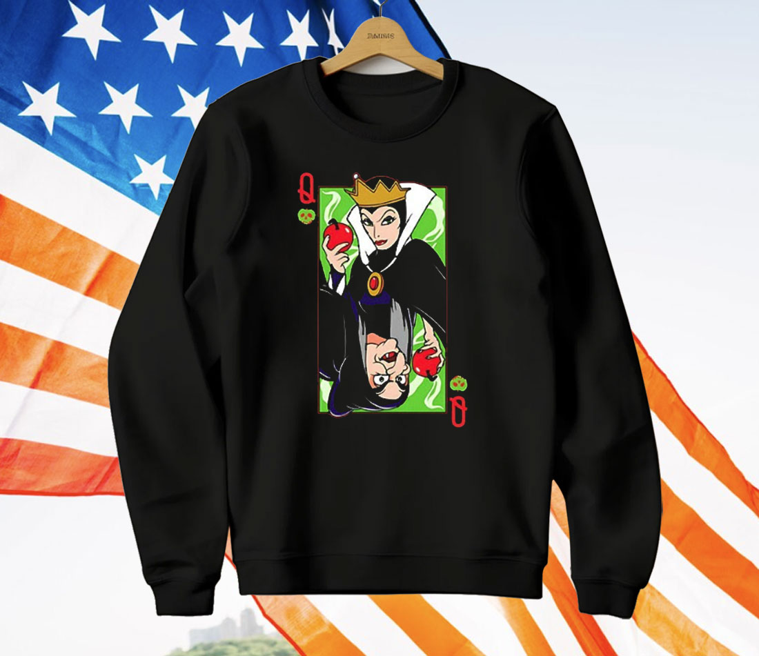 SEO Keywords: Queen Grimhilde shirt, Snow White villain tee, playing card graphic shirt, dark fantasy apparel, unisex fairy tale t-shirt, artistic villain shirt, fantasy fan gift, bold graphic tee