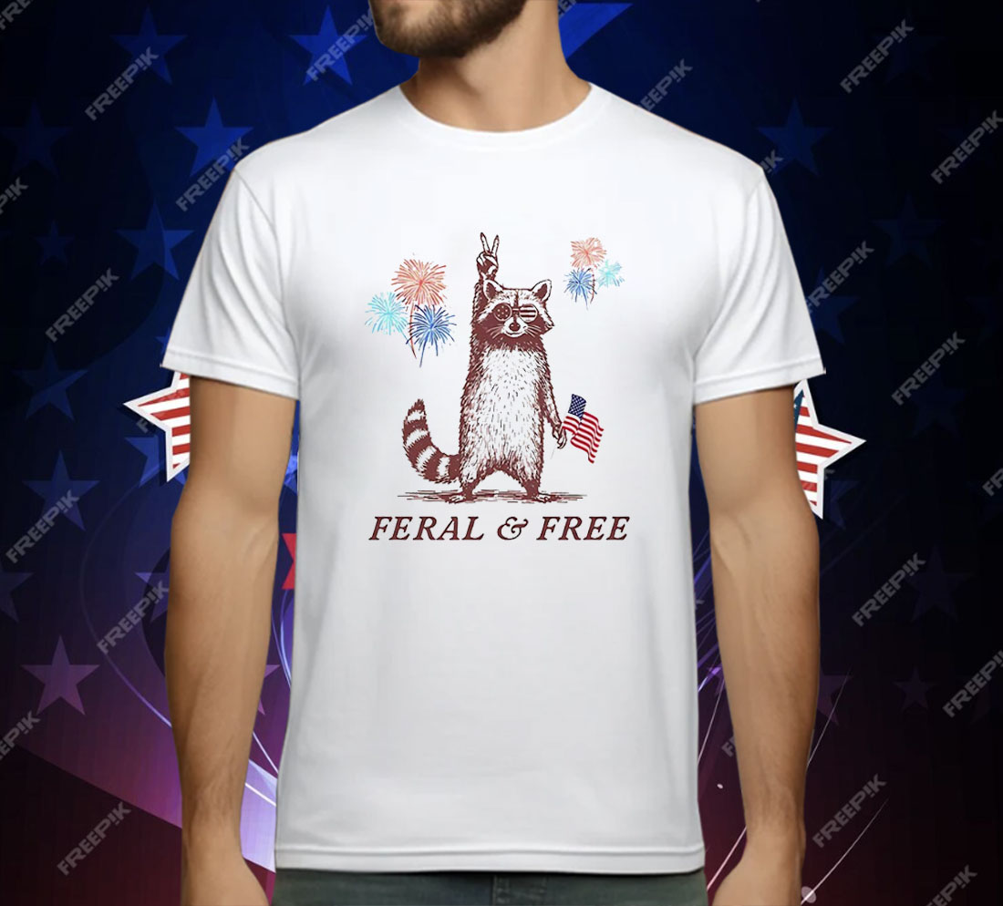 Raccoon Feral and Free Patriotic 4th of July Shirt – Funny USA Freedom Tee