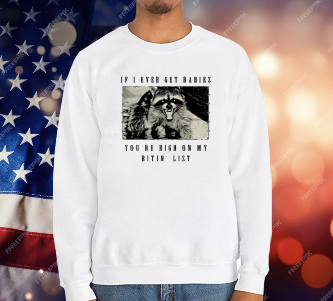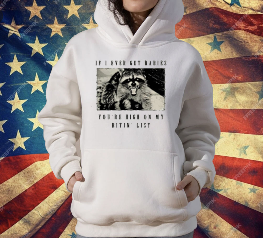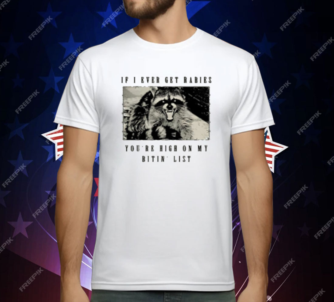 raccoon biting shirt, funny rabies t-shirt, chaotic raccoon humor tee, if I get rabies shirt, trash panda biting list shirt, dark humor animal tee, goblincore raccoon shirt, feral meme raccoon apparel, sarcastic animal lover shirt