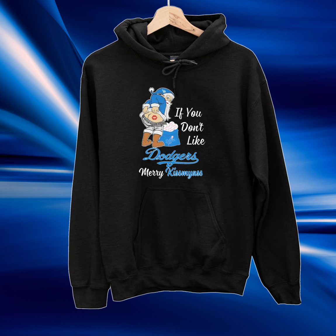 The Santa Butt “If you don’t like Los Angeles Dodgers Merry Kissmyass Christmas Tee Shirt” is not just a piece of clothing; it’s a statement of your team loyalty and your ability to embrace the holiday season with a lighthearted attitude. It’s the perfect gift for any die-hard Dodgers fan or anyone who appreciates a good laugh during the holidays.