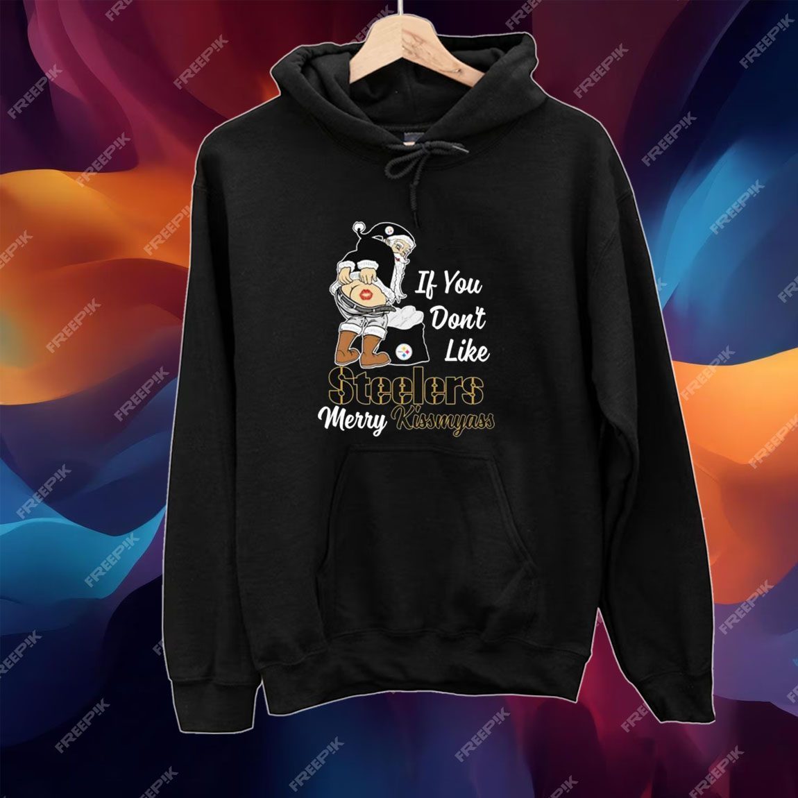 The Santa Butt “If you don’t like Pittsburgh Steelers Merry Kissmyass Christmas” T-Shirt makes for an ideal gift for any Steelers fan in your life. Surprise your loved ones with a present that combines their passion for the team with the joy of the holiday season. It’s a surefire way to bring a smile to their face and make their Christmas extra special.