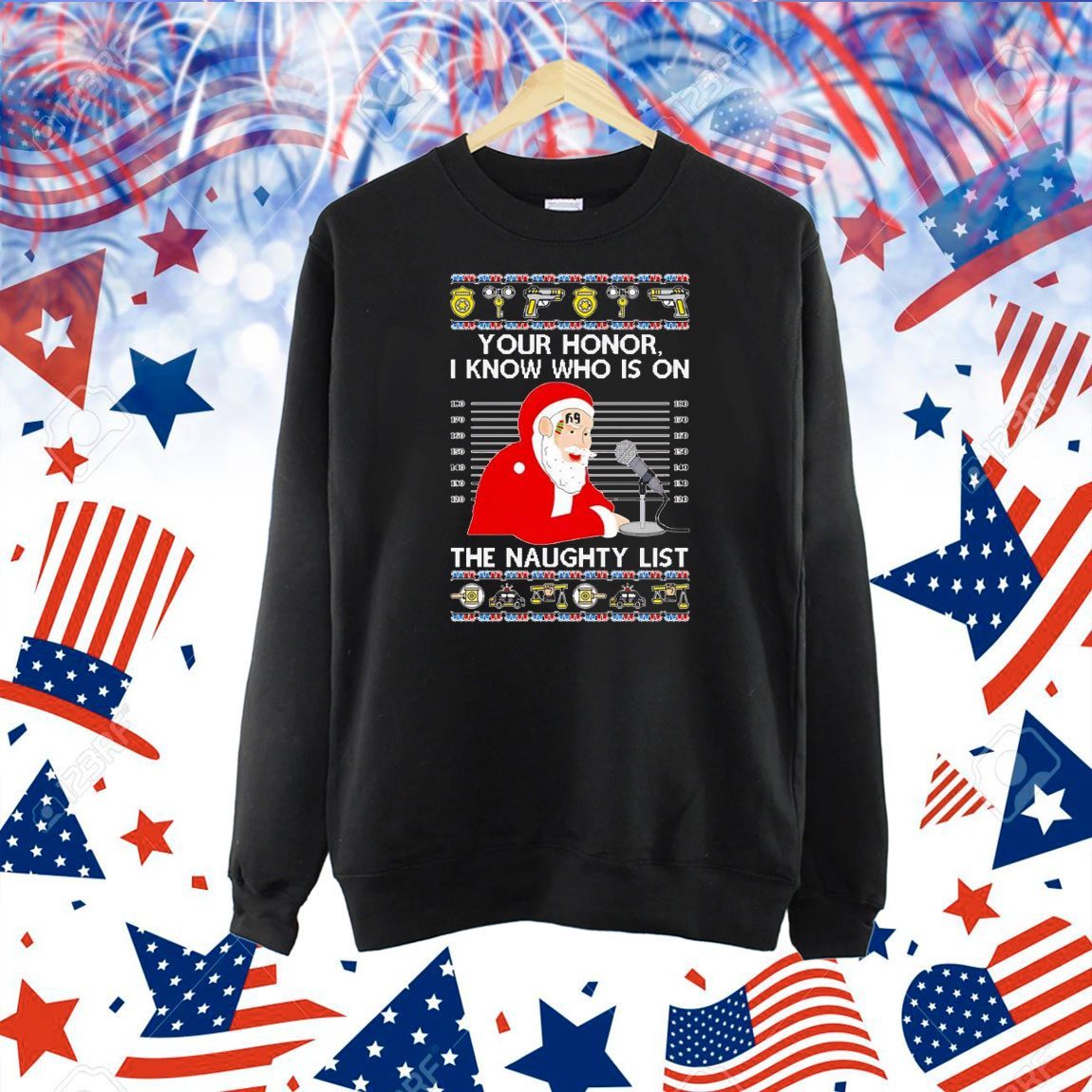 Satan Claus your honor I know who is on the naughty list Christmas Shirt