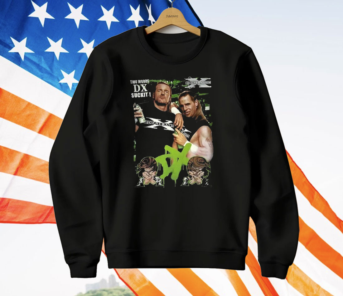 SEO Keywords: Shawn Michaels Triple H DX shirt, WWE D-Generation X t-shirt, Attitude Era wrestling merch, Two Words DX apparel, classic WWE wrestling shirt, HBK and Triple H tee