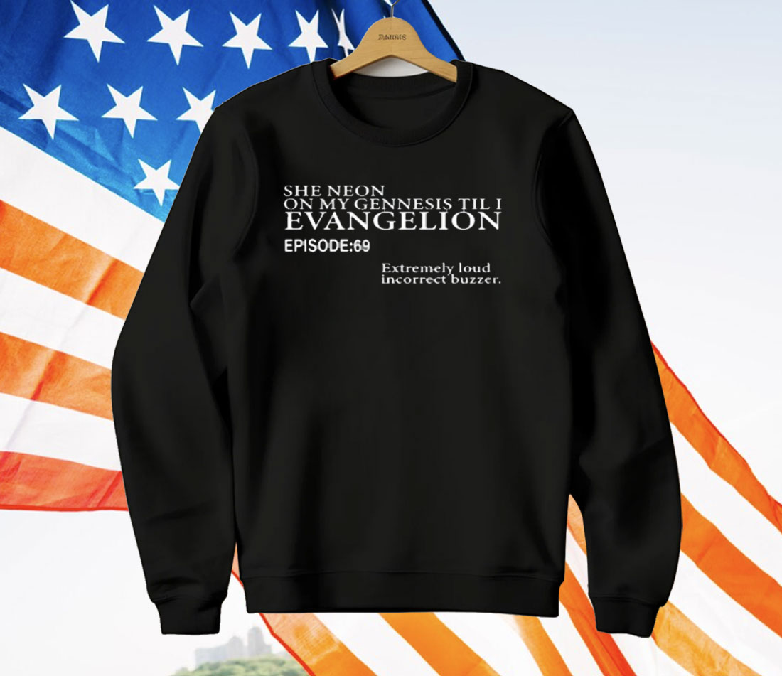 Plug in, embrace the chaos, and wear your fandom — She Neon On My Genesis Til I Evangelion Episode 69 Shirt.