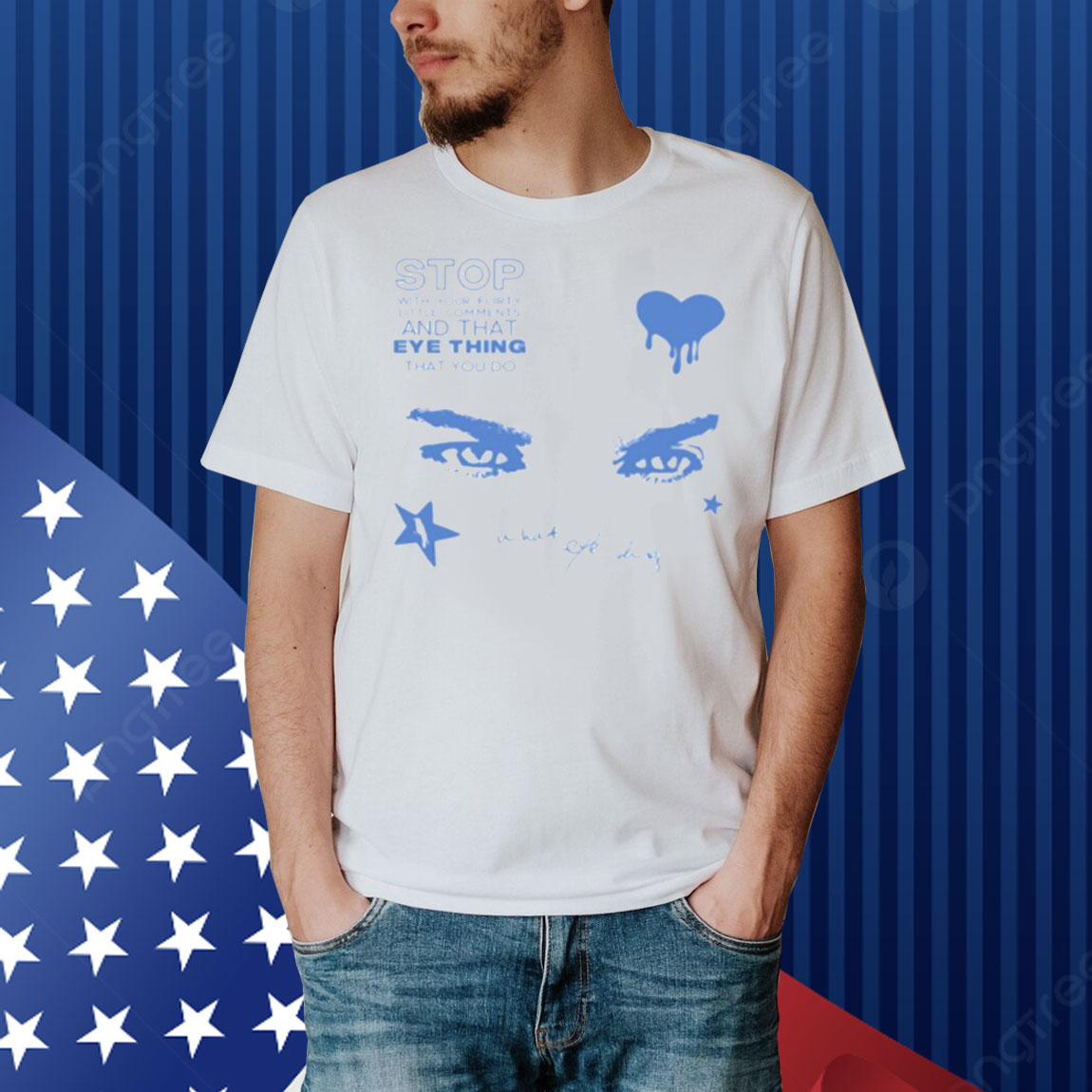 If you know, you know. The “Stop With Your Flirty Little Comments and That Eye Thing That You Do” Shirt is for anyone who’s had enough of that one person’s charm. Inspired by viral internet humor and playful flirtation, this tee is equal parts funny, bold, and relatable.