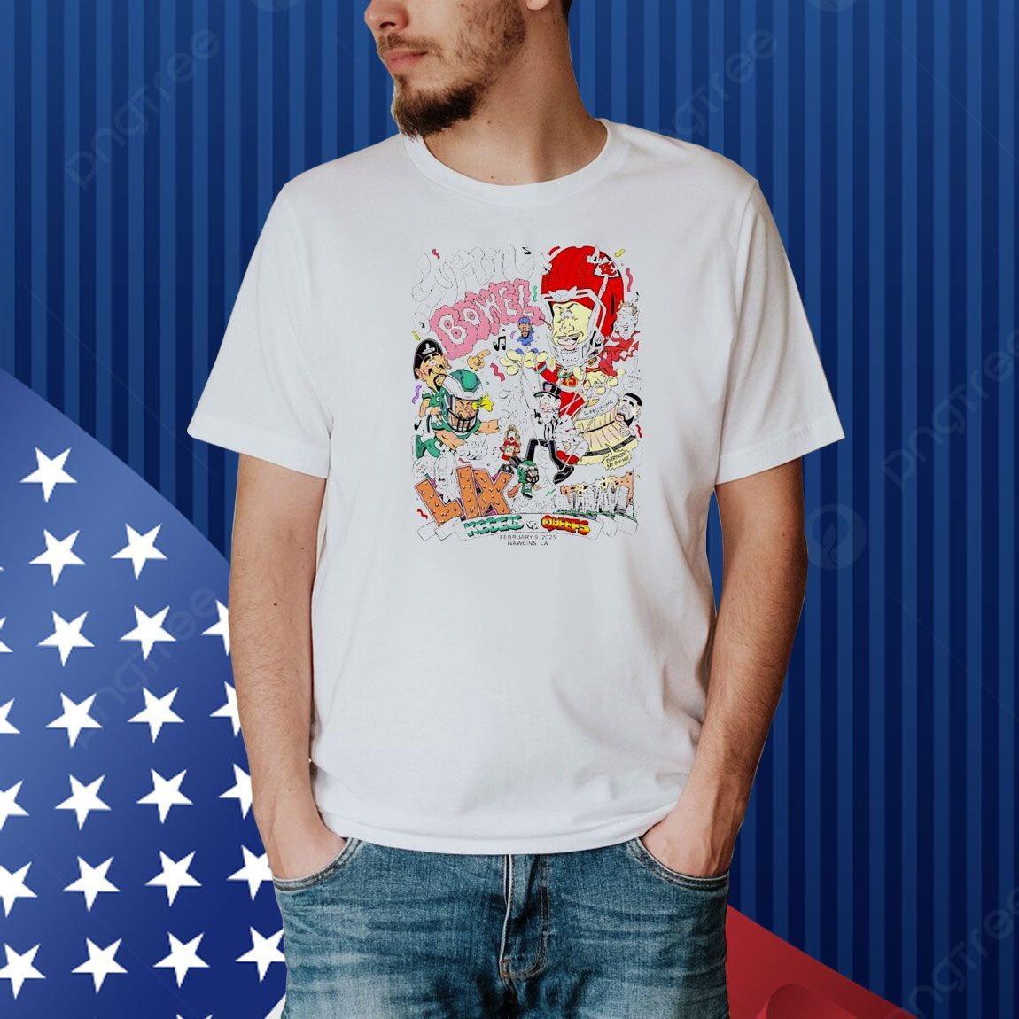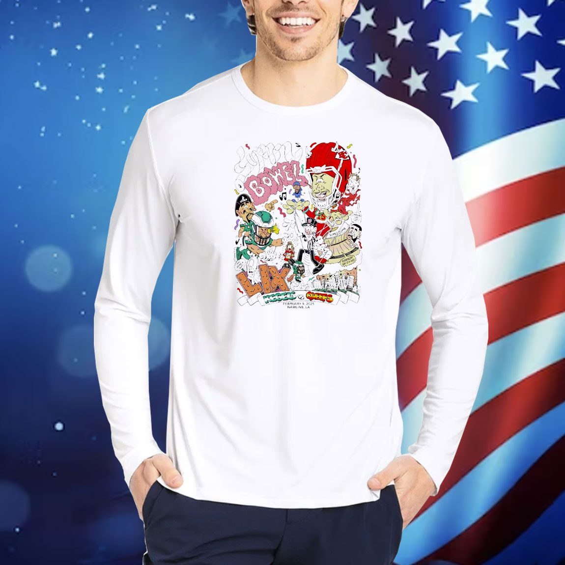 Don’t miss out on this limited-edition Super Bowel Kegels vs Queefs Feb 9 2025 Cartoon Funny Shirt. Order yours today and get ready to laugh, cheer, and make history!