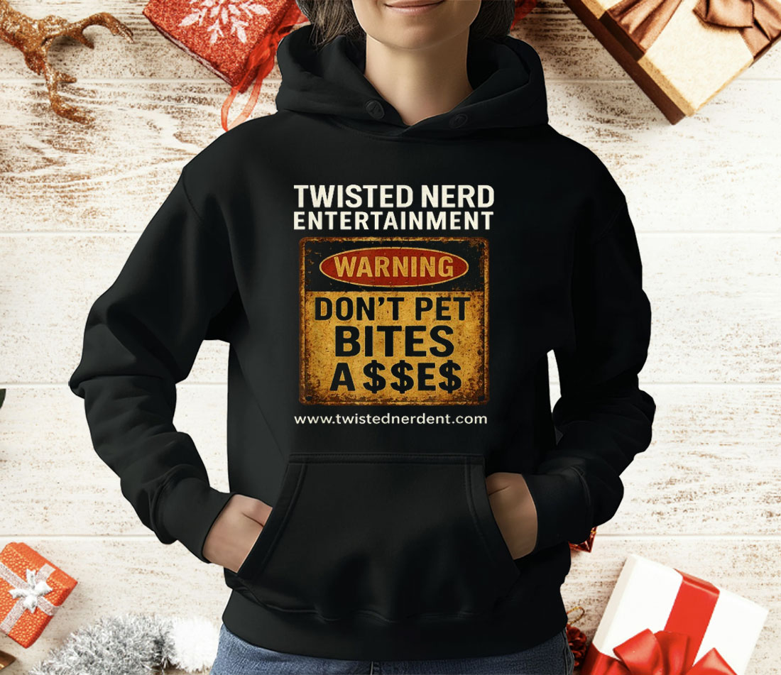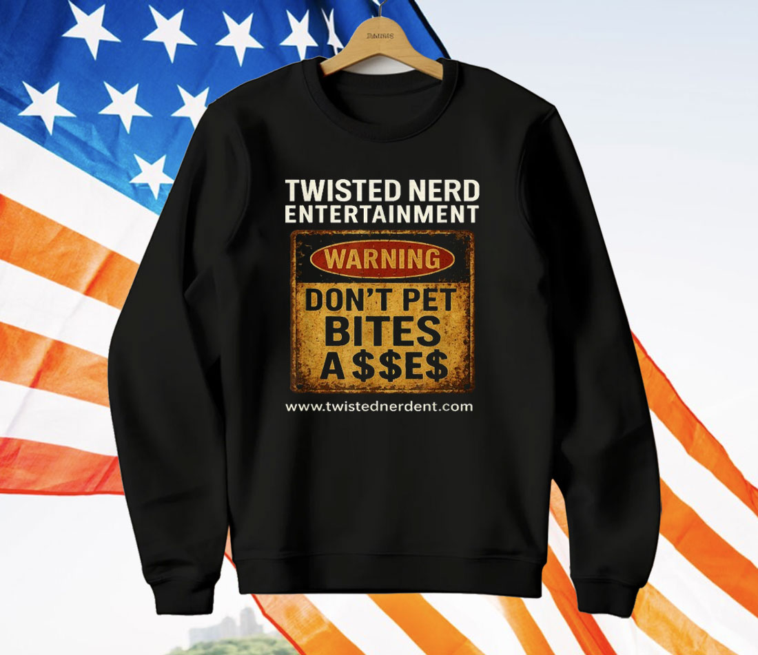 Twisted nerd Entertainment Warning Don’t Pet Bites T-Shirt