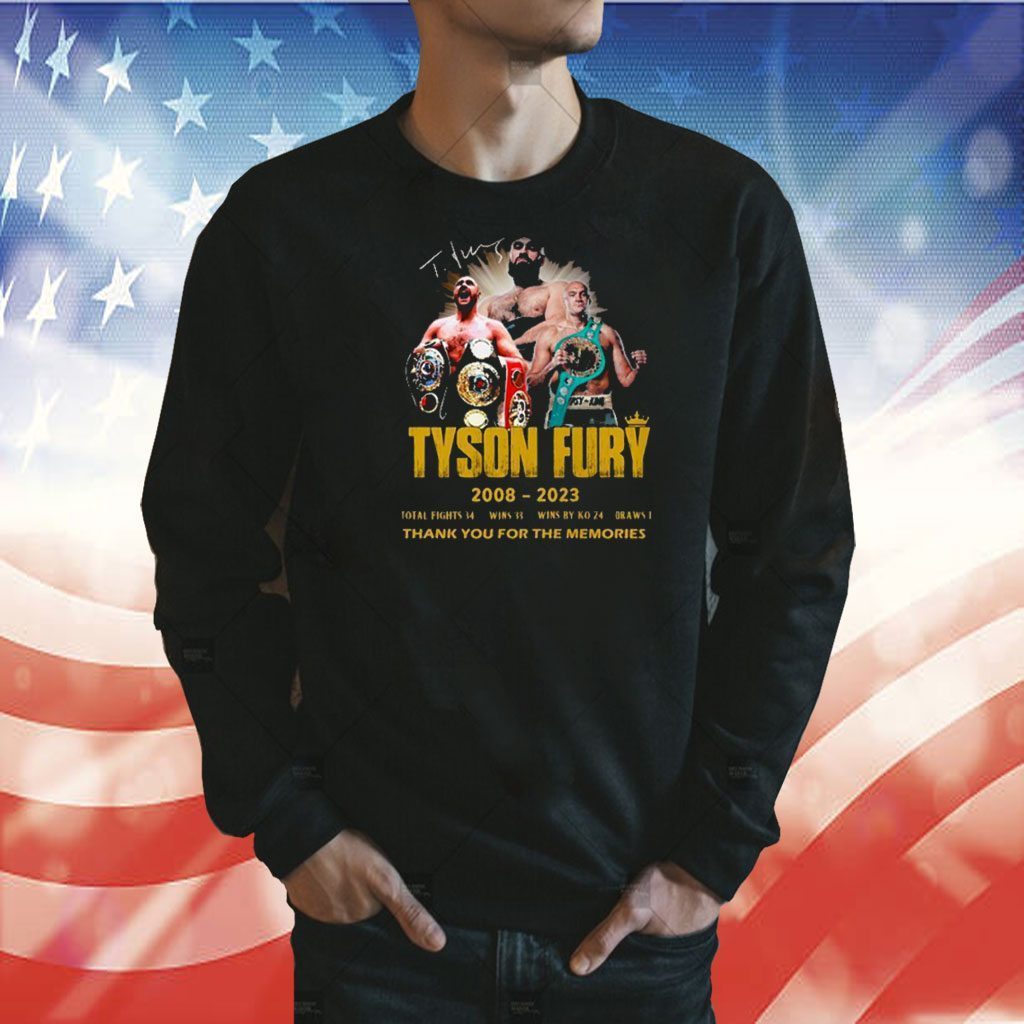 In summary, the Tyson Fury 2008 – 2023 Thank You For The Memories TShirt is a comprehensive tribute to the remarkable career of Tyson Fury. With its captivating design, premium quality, and profound symbolism, it offers a unique and engaging way to celebrate the legacy of one of boxing’s greatest icons. Get yours today and proudly wear a piece of boxing history.